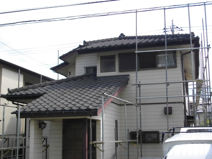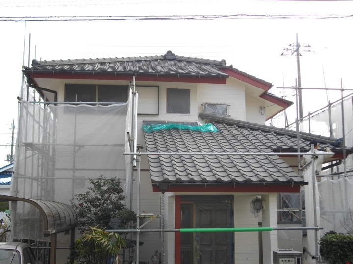 瓦屋根のしっくい補修・外壁のコーキング補修いたしました。